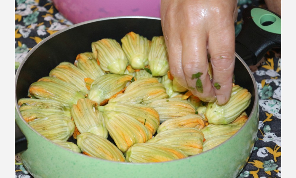 Gürece köyünden Saniye Teyzemiz bu sayıda da bizleri yalnız bırakmadı, hünerlerini bu kez kabak çiçeği dolması ile sergiledi.